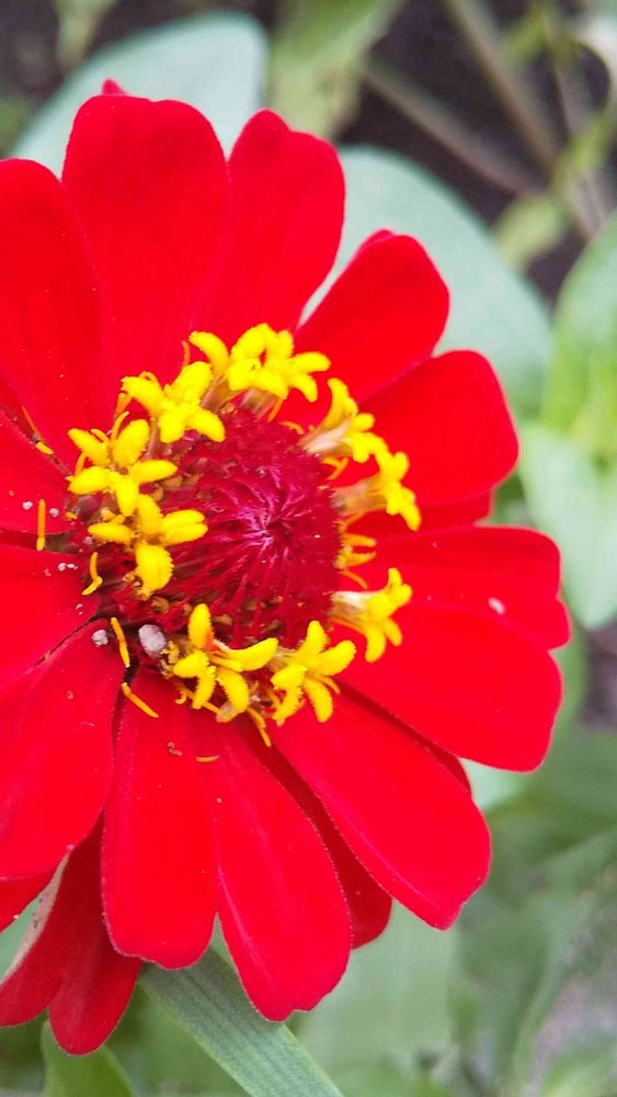 真っ赤な花びら🌼の、百日草🌼