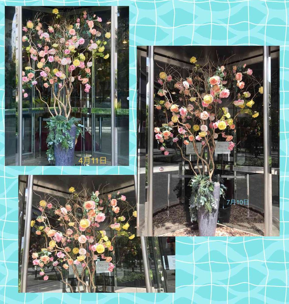 都内のこのホテルの裏側の出入り口には花が飾られている