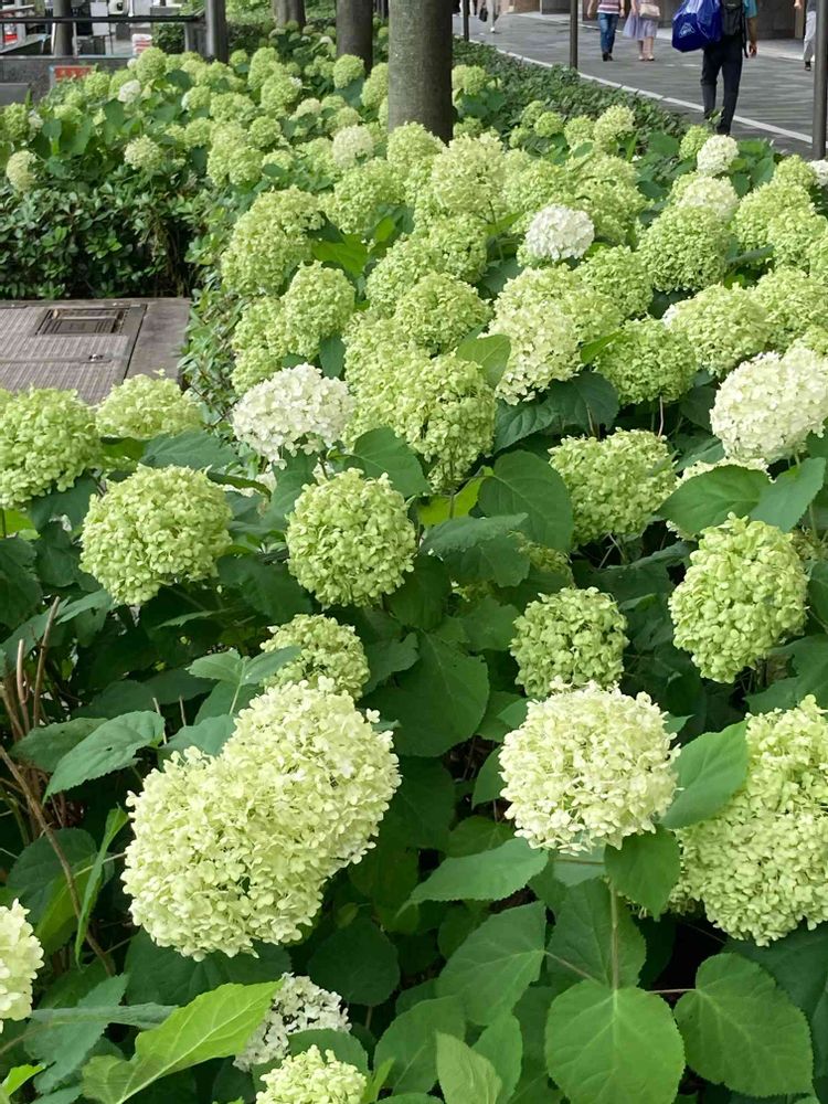 うわー‼️最近御池通にこんなに綺麗にアナベルの花が咲いているのですか⁉️😍