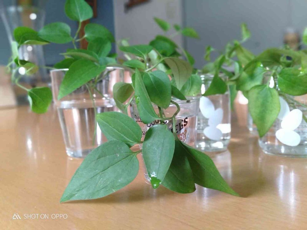 すぐ挿し木にしようと思ったのですが、葉っぱがきれいなので、そのまま飾りたくなりまして…🤭