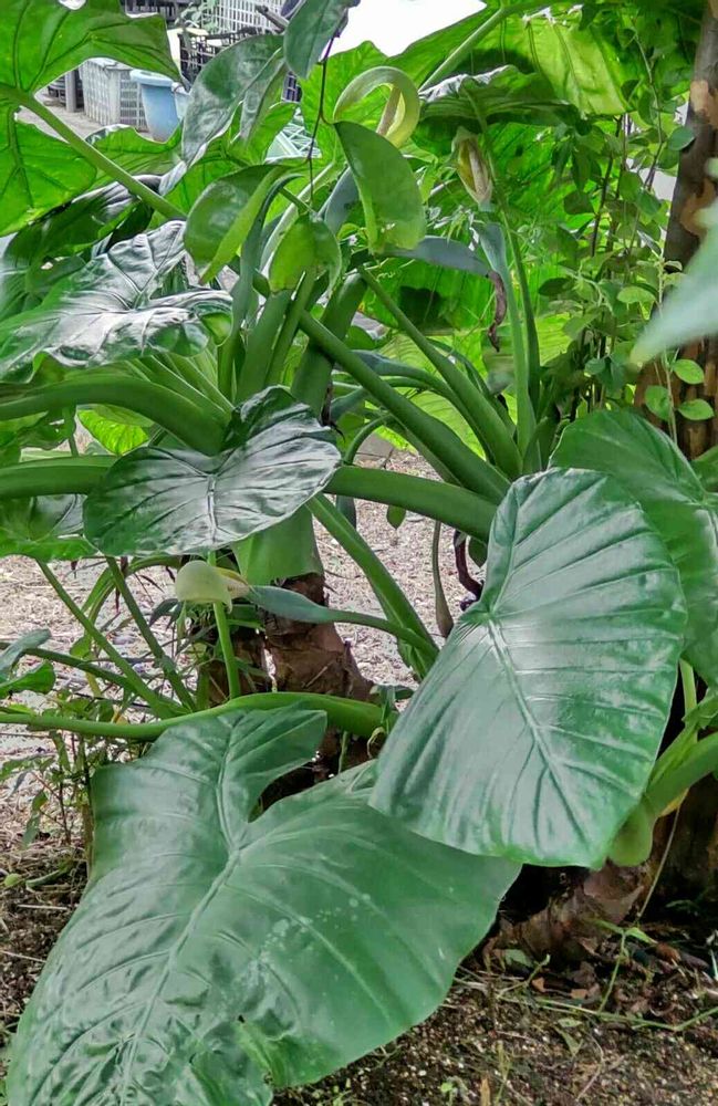 夏の花ひまわりさんのクワズイモの花,散歩道で,ゲゲゲの月曜日の投稿画像
