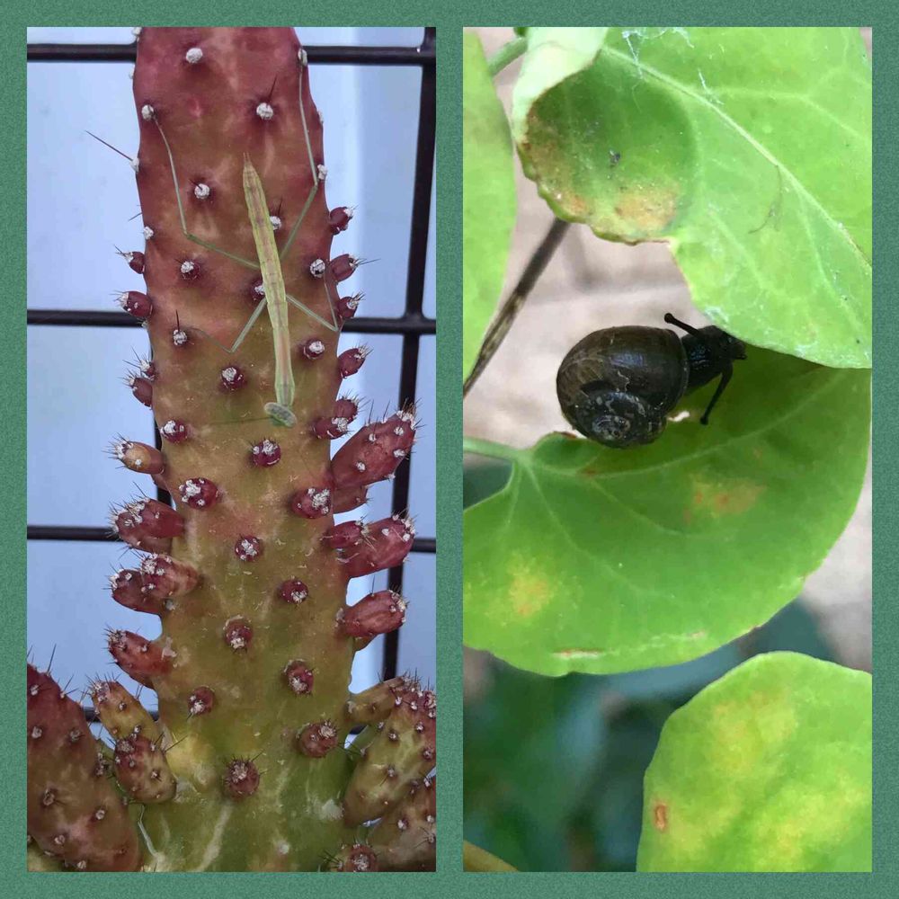 左📷 100均のウチワサボテン🌵に、カマキリbaby🤗