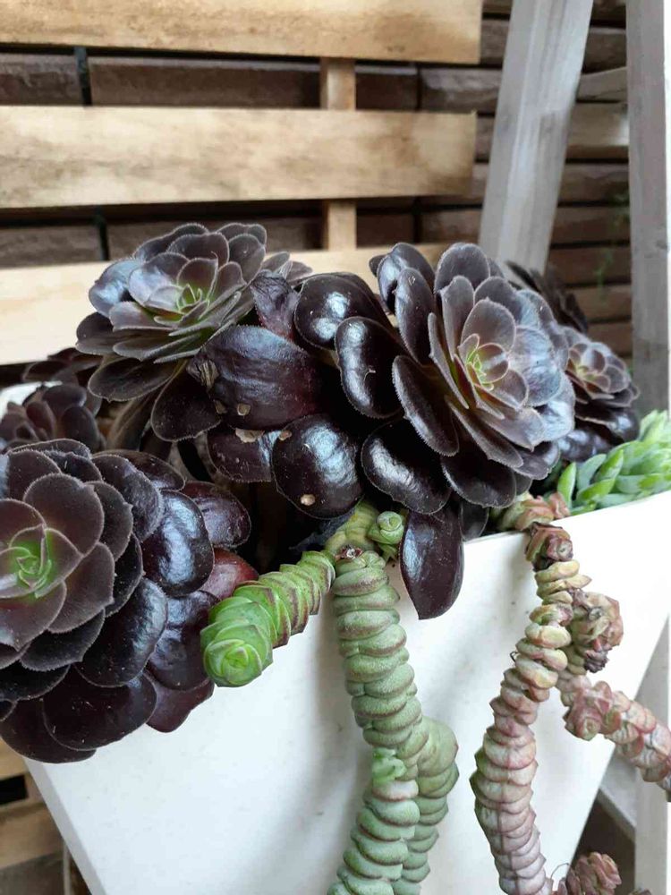 育ている軒下の黒法師!!沢山増えました。シックな感じが素敵です。母から、分けてもらった数珠星も根が張り元気そうです😌