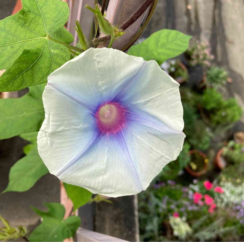 写真はルーフバルコニーの柵を登った宇宙朝顔🪐