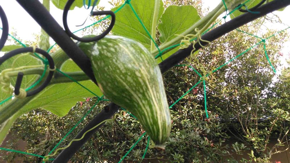 ウチのカボチャはようやくネットに絡ませる大きさになりました。