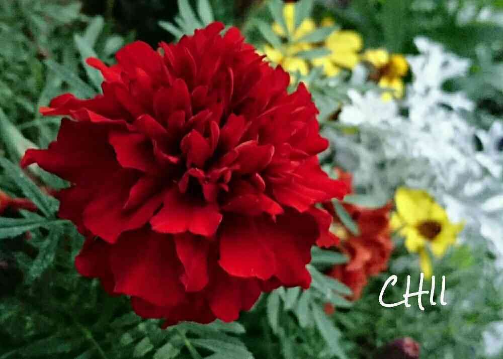 マリーゴールドといえばオレンジのイメージでしたが、真っ赤なマリーゴールド、とてもかわいいですね💕