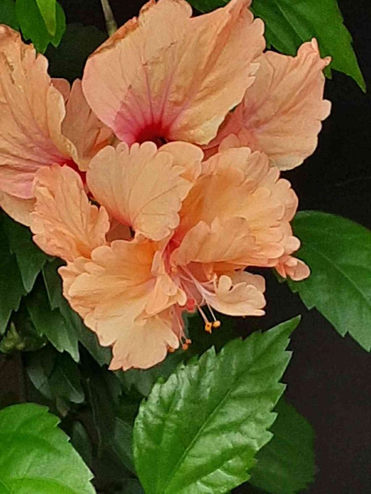下向きだったので、📱での撮影は中々難しく、本来なら、2段咲きになって、ハイビスカス🌺本来の蕊が伸びているはずなんですが、ちょっと残念(。・´_`・。)