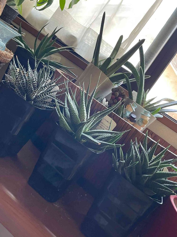 硬葉ハオルチア スーパービッグバンド &ユニバース &リミフォリアを東側窓辺に置いています💕