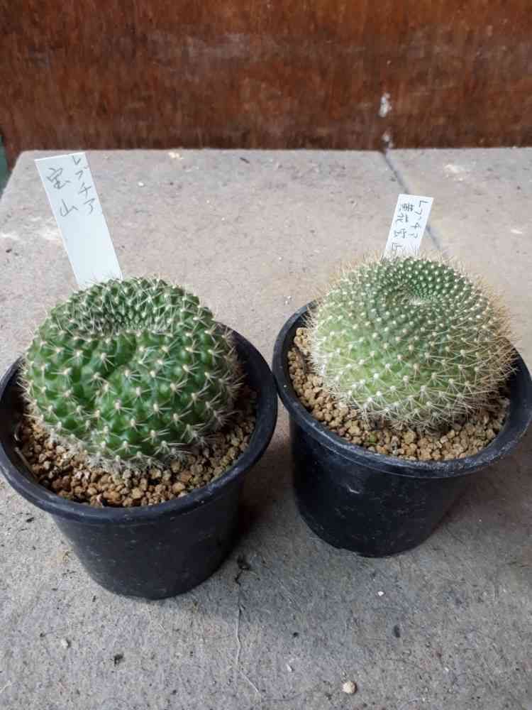 今夜の1枚は、夏に某長野県のサボテン園で狩ってきた🌵レプチア 宝山と黄花宝山🌵どっちも根がぎっしり詰まっているのですが、まわりに実生があったので放置してました😅左の宝山が、もじょもじょ動いて丸が崩れそうな予感😱最初はまん丸だったのに・・・