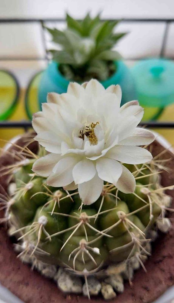 このサボさん🌵外に出したことなくて😅明るい窓辺のレースのカーテン越しにいます😊