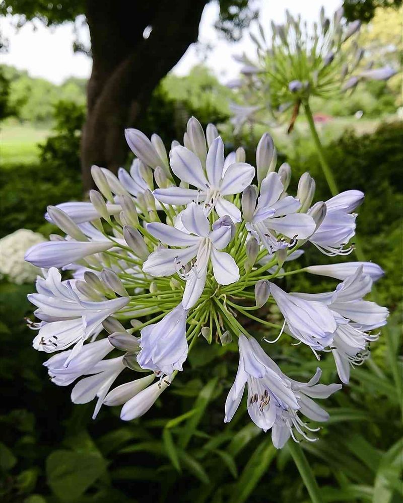 アガパンサス属は20種ほどあり、園芸品種も多数ある。花の形はユリのようなラッパ形のものや、星形のものなど、種によって様々。公園や街中の植え込みなどでは、葉が茂って大きな株になり、花茎を1m近くまで伸ばすアガパンサス・プラエコクスの園芸品種をよく見かける。草丈が30㎝くらいの小型種も栽培される。