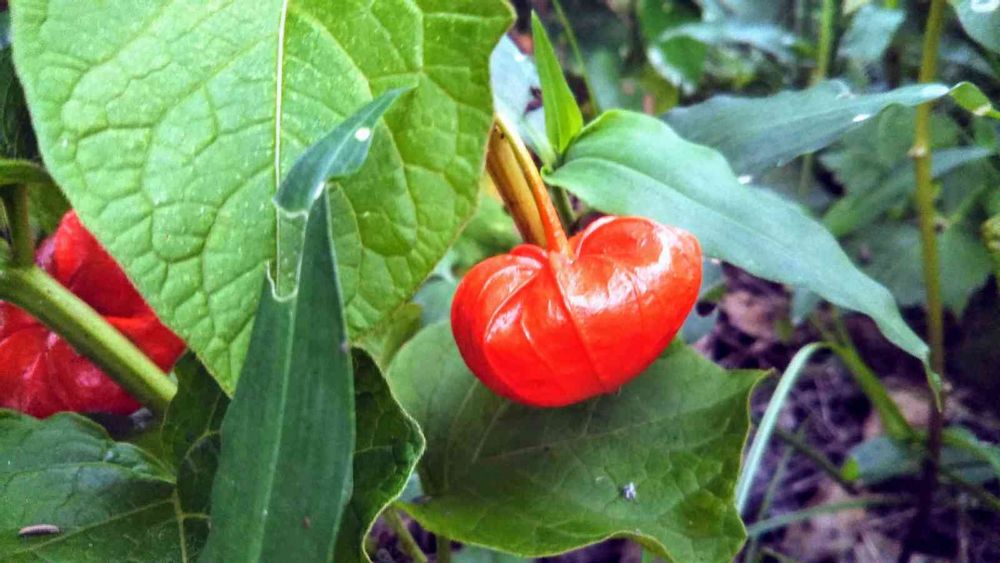 草むらの中に隠れるように咲いていた鬼灯さん。
