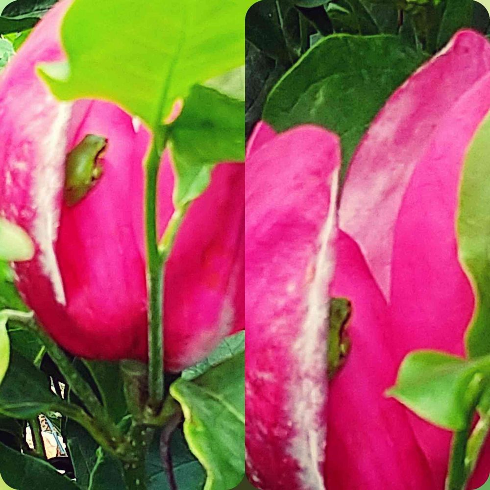 先日のモクレンを見に行ったら、🐸かえるさんがかくれんぼ🐸