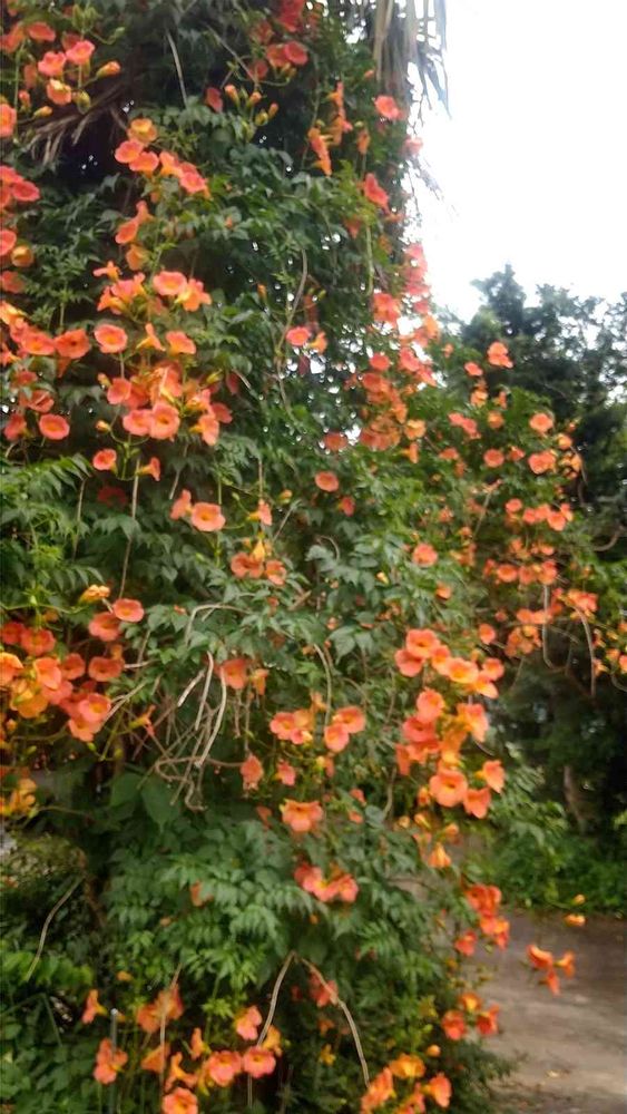 満開になったノウゼンカツラ🌿❤️🧡🌿❤️🧡🌿🌼🧡🌿❤️🧡🌿