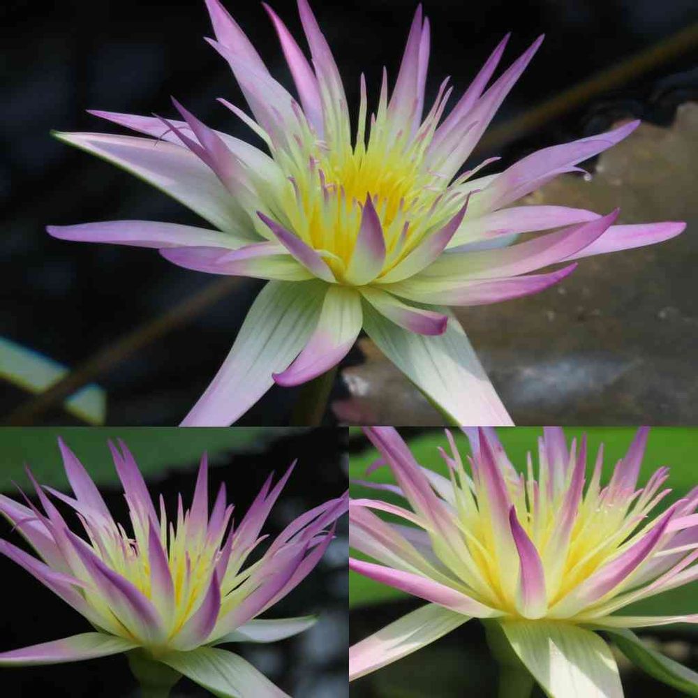 花びらが非常に細長く、大きく花を開く為、水面上でも大変目立ちます。葉はグリーンで、ごくわずかに茶色のドットが入りますが色合いが薄い事もあり一見すると分かりません‼️