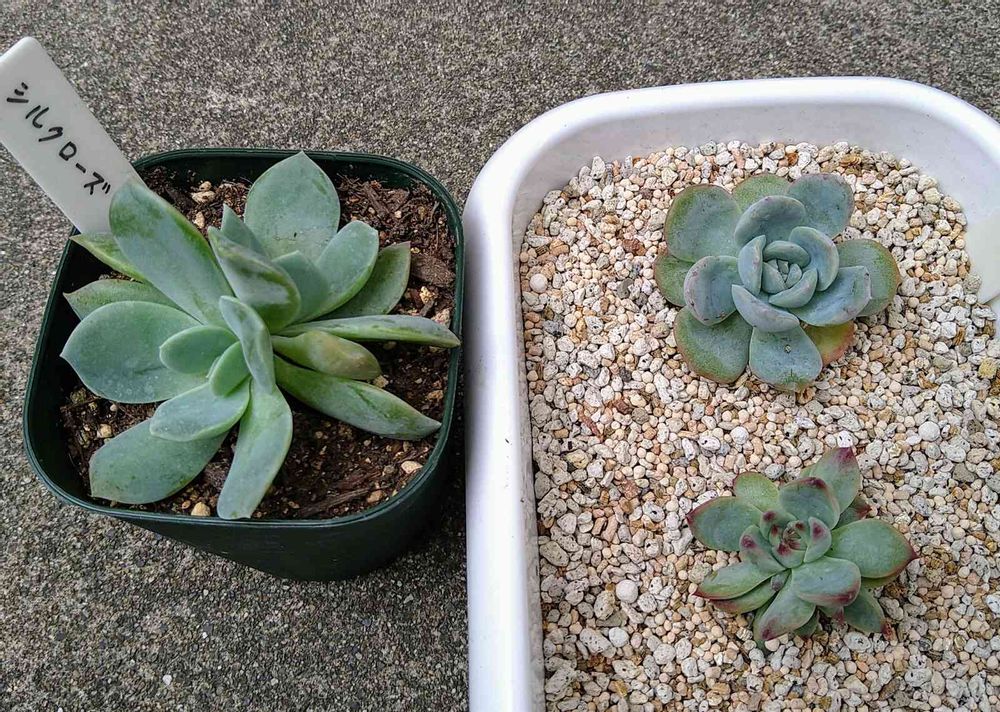 右下👇は、水蜜桃Cタイプの葉挿しっ子です。先日、親葉がジュレたのではずしました💚