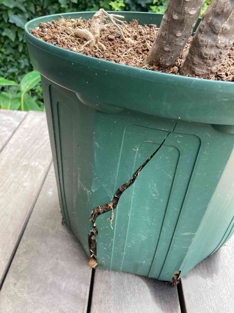 元々樹高150cm位で二本植えで30cmのスリット鉢ってのがかなり無理来てたんで先程鉢増ししました( ^ω^ )