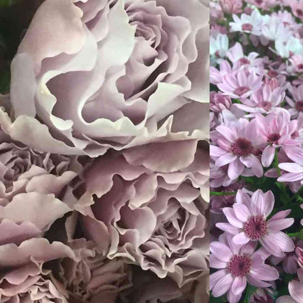 薔薇もサイネリアも優しい色合い同士でシックリして素敵💓💜╰(*´︶`*)╯💜💓