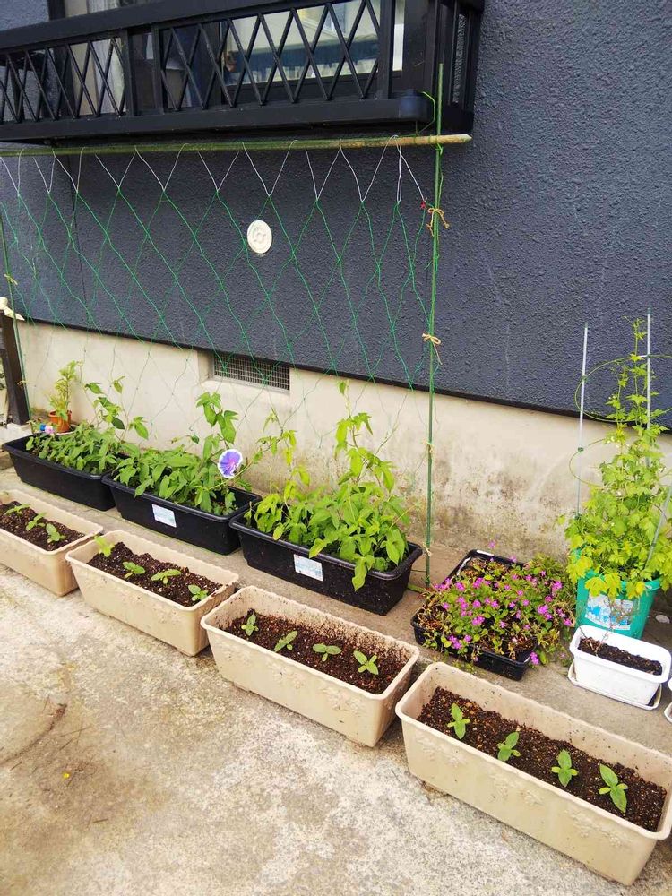 ゴーヤのカーテンもあり、イメージ通りになるといいけど😅