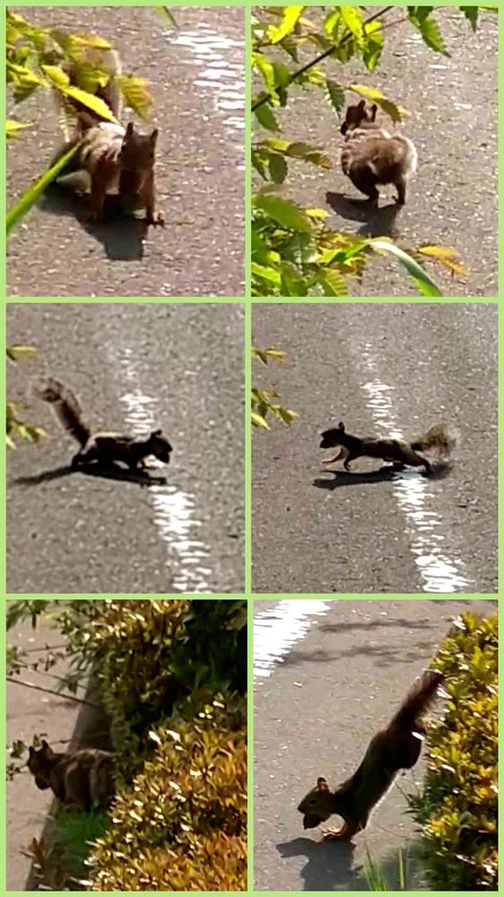 このあと、リスくん🐿️は、道路を渡り、ヒマラヤスギに登っていきました。