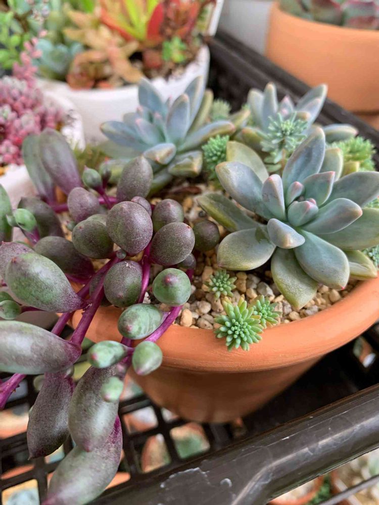 多肉棚の1番上の寄せ植えコーナーです😊❤️
