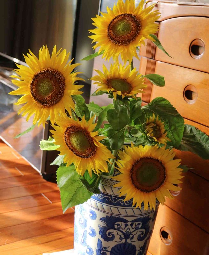 ✨青い絵柄の花器が🌻と良く合ってますね😍