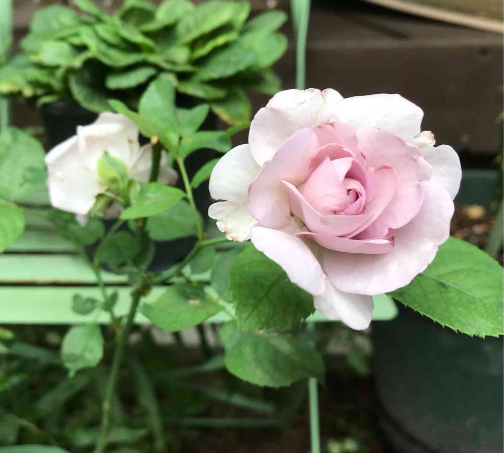春先に、うどん粉病になったバラがあって、日当たりが不十分だとなりやすいみたいだったので、置き場所を変えたのですが、今度は日照り💦