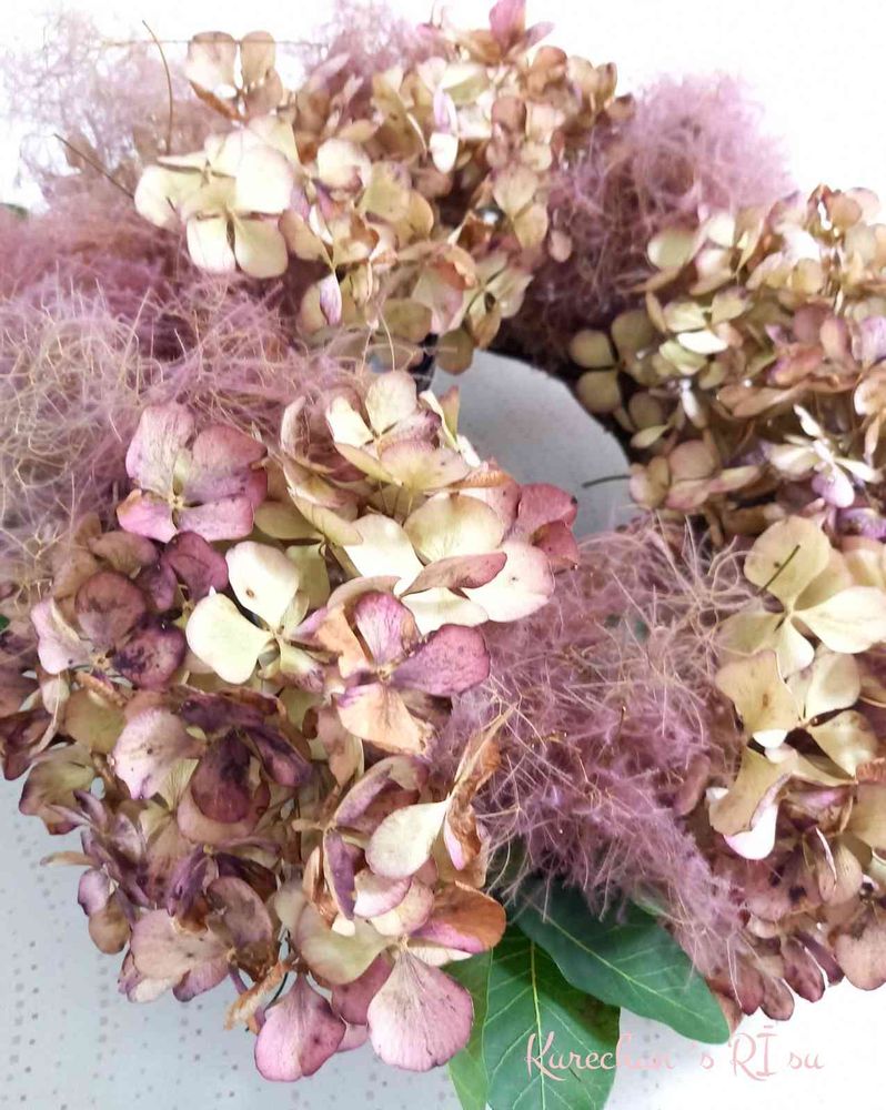 紫陽花のドライとスモークツリーの色が統一感があっていいわ~🎶