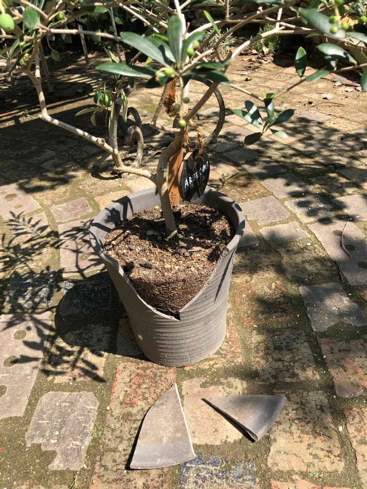 鉢の避難のやり方が甘くて倒れた陶器の鉢がひとつ割れてしまった🥲(新しい鉢に植え替えました)