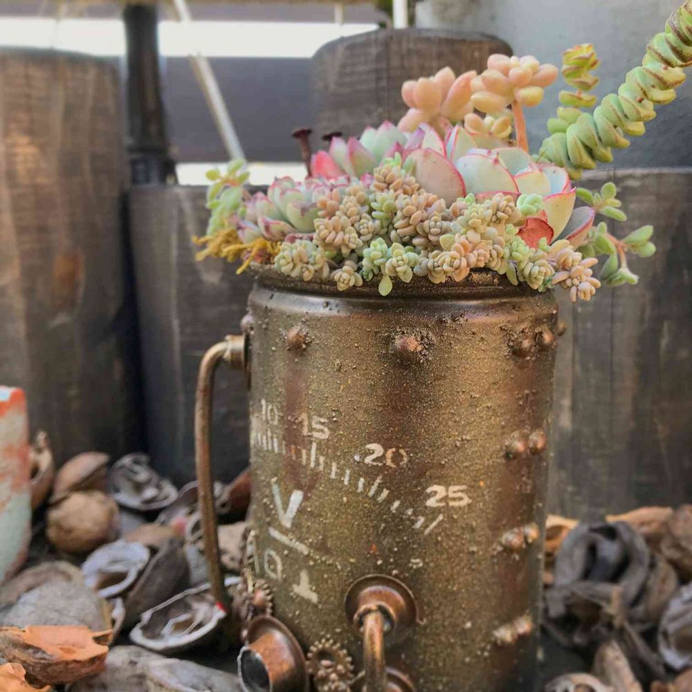 わぁっ❣️スチームパンク缶にchiiちゃんの寄せ植え😍 成長するの私もワクワク💕 今も可愛いのに数ヶ月後どうなっちゃう⁉️(♡︎´艸`)💖