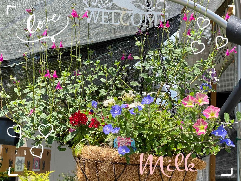 ハンギングの寄せ植え難しいのに沢山のお花が入ってめちゃめちゃ可愛くて素敵な寄せ植えです😊💕