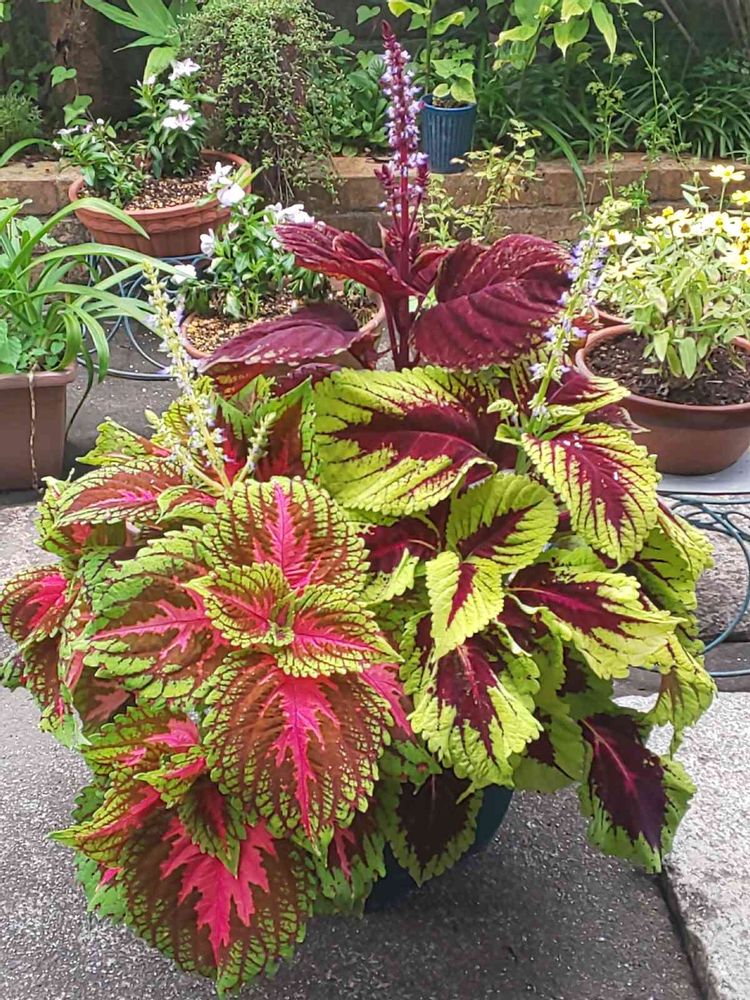 コリウス私も初めてでまだ小さいのですが、調べたらお花を咲かせない方が柄が綺麗に出ると書いてあったけど、かずこさんのはとても綺麗だし、この前他所で見たのもちゃんとガラ出てたから一概には言えないんだなと思いました😅