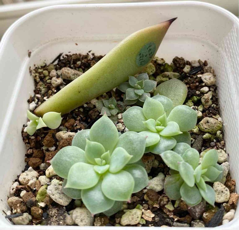 なって、奥の葉挿しから芽が出ました。