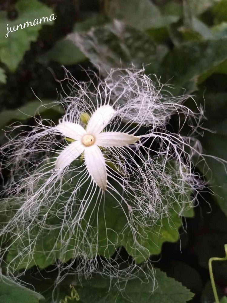 見事に咲いていますね、白く🕸️の糸のような花弁が美しくて、近くにノブドウとカラスウリが絡んだ木がありますが、この瞬間を見れていません、何時も赤くなった実を見つけては、