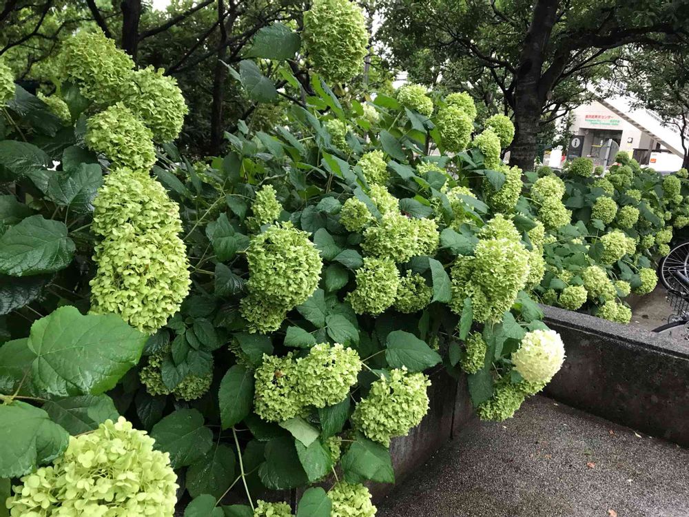 アナベルでしょうか、随分と咲き進んで…そして雨も、ここのところその降り方を変えて…