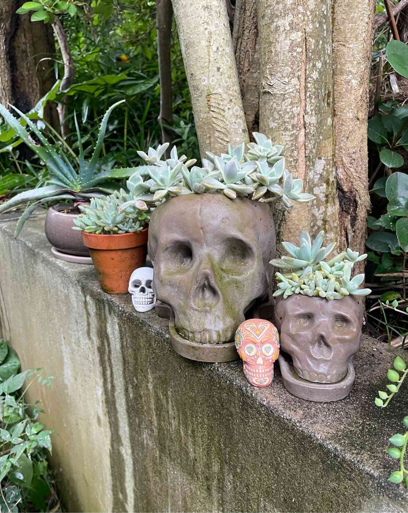ずーっと庭の隅の塀の上に放ったらかしのスカル鉢。(放置しすぎて苔生えとるし)