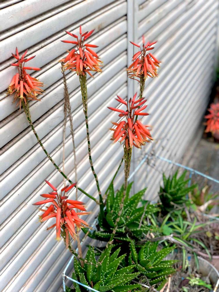 春に、放ったらかしカランコエ赤提灯を見つけた場所で、今度は、アロエのような花が咲いていました。
