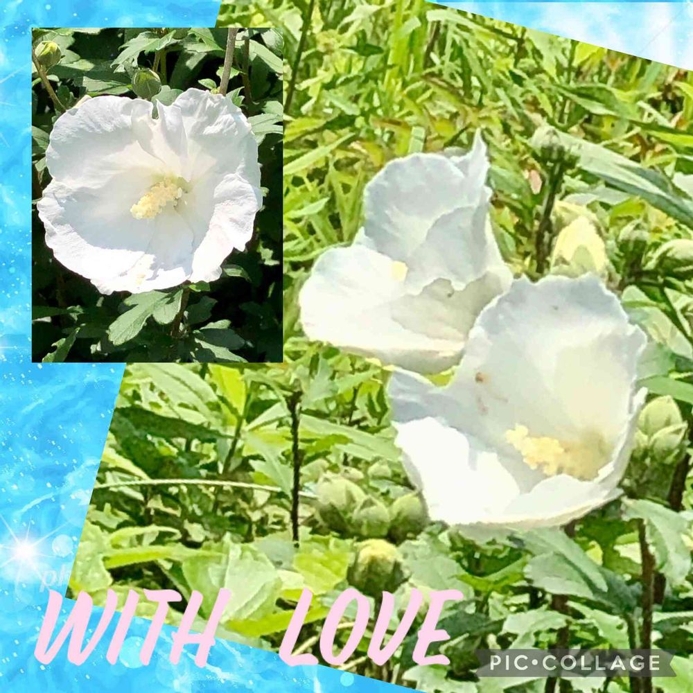 眩しいくらいのグリーンの中で白いムクゲの花がとても涼しげですネ(*^^*)💗💚🌿