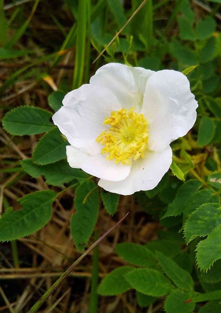 オオタカネバラの白花 高山や寒地に生える原種のバラ、別名オオタカネイバラ。美しい~🌿🌼🌿