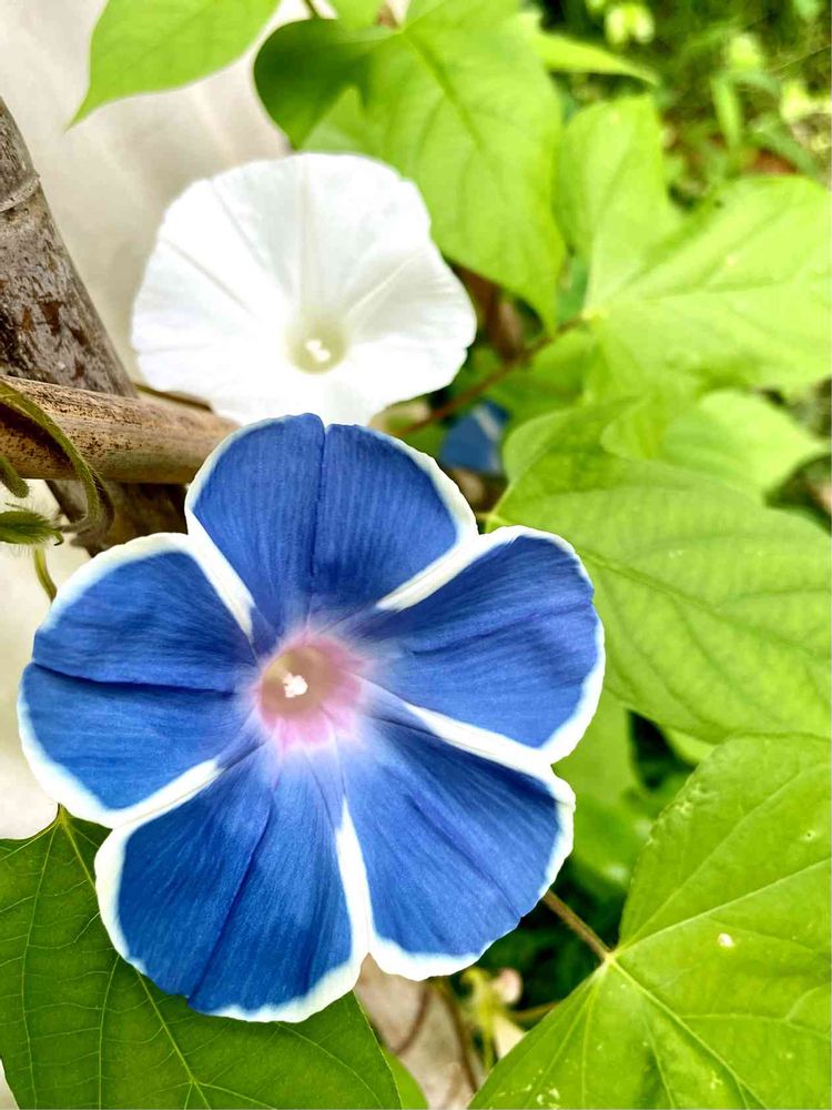 こんなに可愛いらしい朝顔 初めて見ました😍マリンカラーというのかな??珍しいですよね
