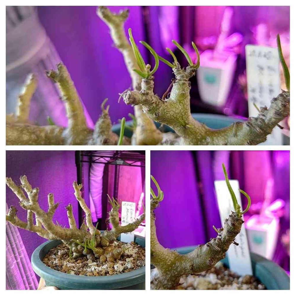 夏になり、葉が無くなったからこの時期、雨に濡れない方が良いだろうと室内避難していたら、葉が出てきた。