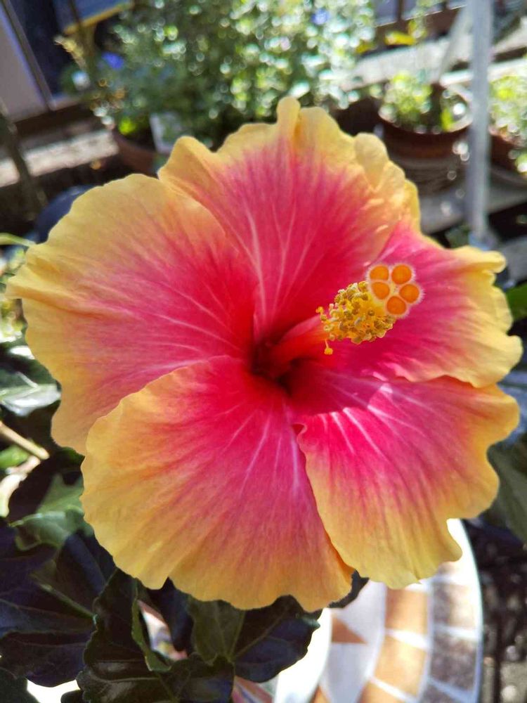 真っ赤なハイビスカス🌺も1輪咲いていますが、こういう色合いもほっこりしますね😀