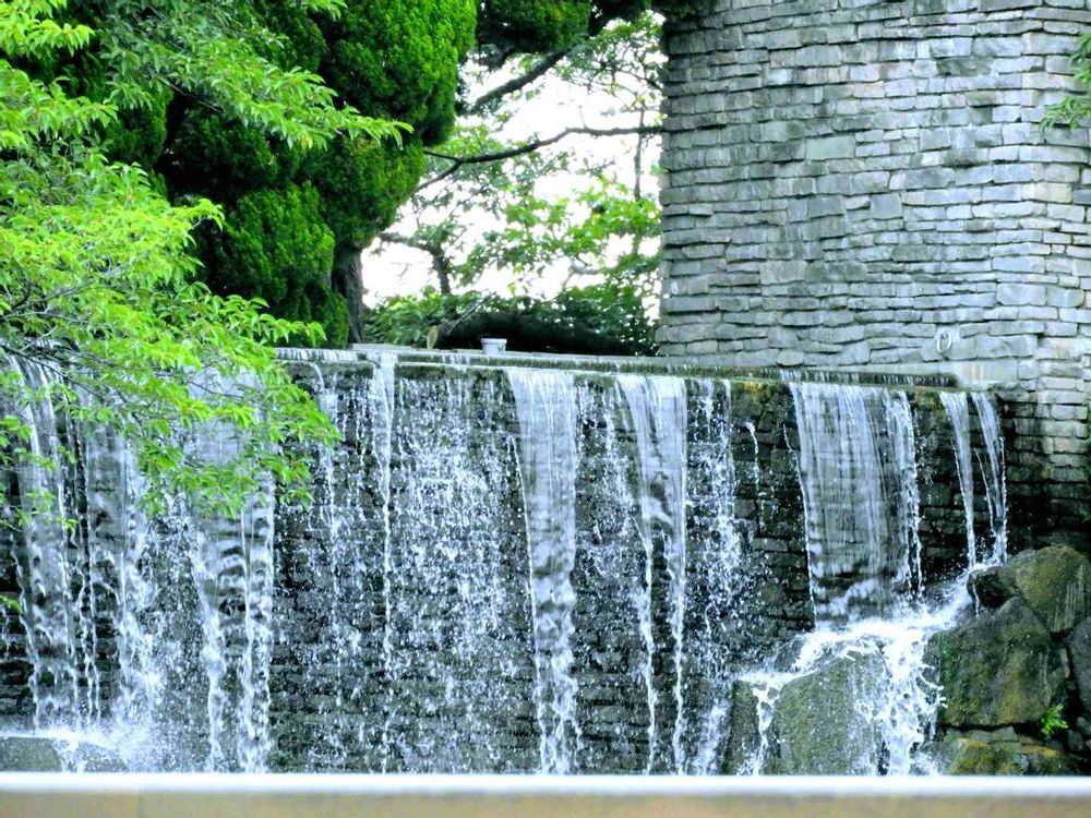 自然の滝ではありませんが、側に有る樹木が、季節を感じさせてくれます。