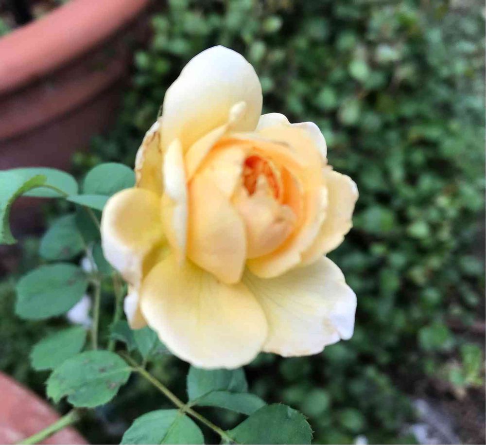 小さめのゴールデンセレブレーション🌹一番花の後、葉が落ちてしまいましたが復活してくれました(^^)良かった💕