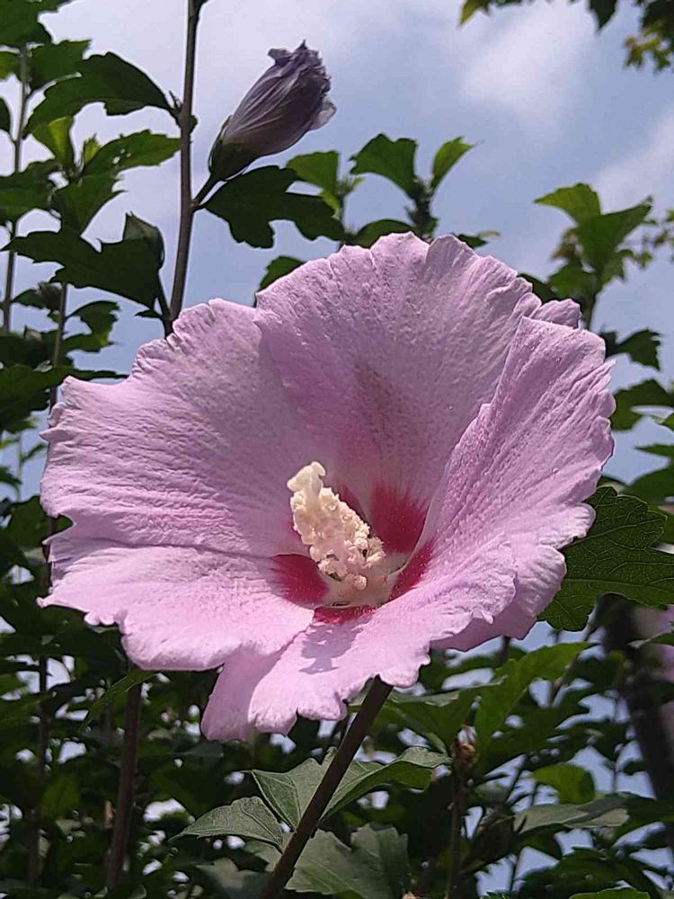 ムクゲのお花が咲き始めたので、今朝青空が見えてるときに📸