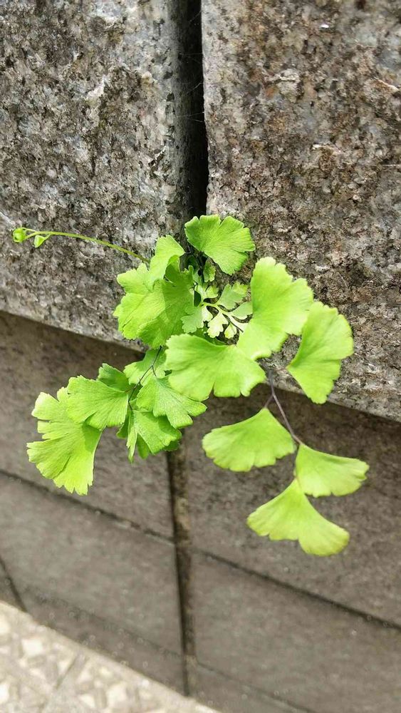 仕事先のスロープの頑丈な壁から🌿ホウライシダ🌱が結構カッコよく出てきた~