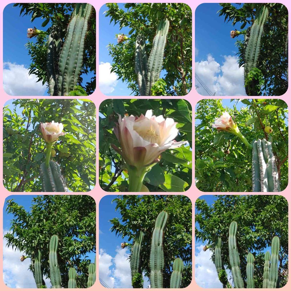 青空にサボテン🌵花咲いていました。🎵🎵🎵