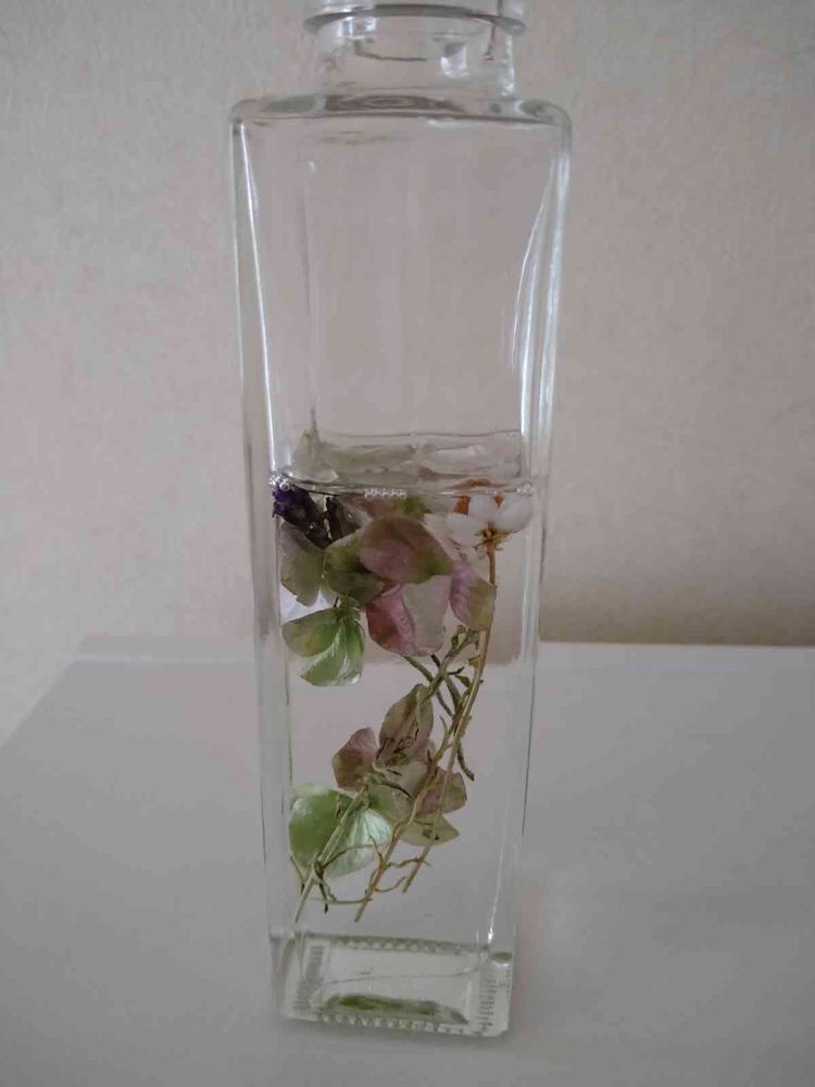 ドバドバってハーバリウムオイル流し込んだら並べた花は移動するんだね…当たり前か…