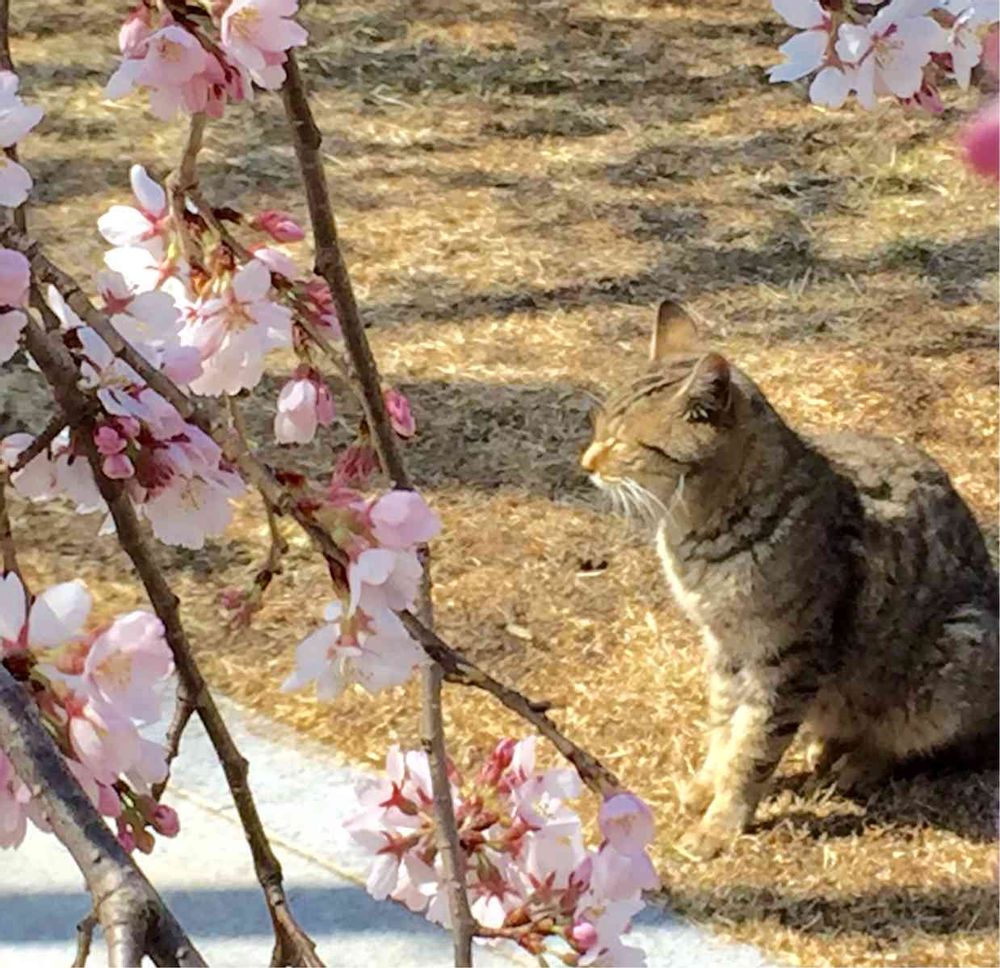 兎川霊瑞寺にてご近所の猫ちゃん二匹優雅にお花見〜🎵