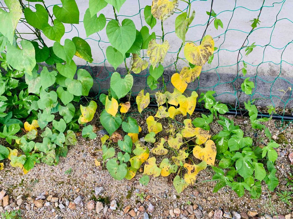 順調に蔓を伸ばしてくれていましたが、ここにきて急に黄色く枯れてきた葉っぱ😱